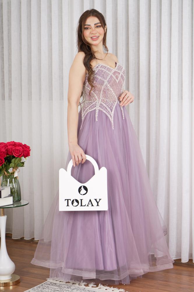 فستان سهره فخم مطرز باللول والكريستال ومصنوع بعنايه من خامه التل التايواني الاصلي مصمم الفستان بقصته التوب الراقيه ومن الاسفل بقصته الدبل كلوش ومبطن بخامه التفته مما يعطي التصميم فخامه تليق بك