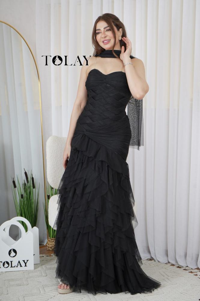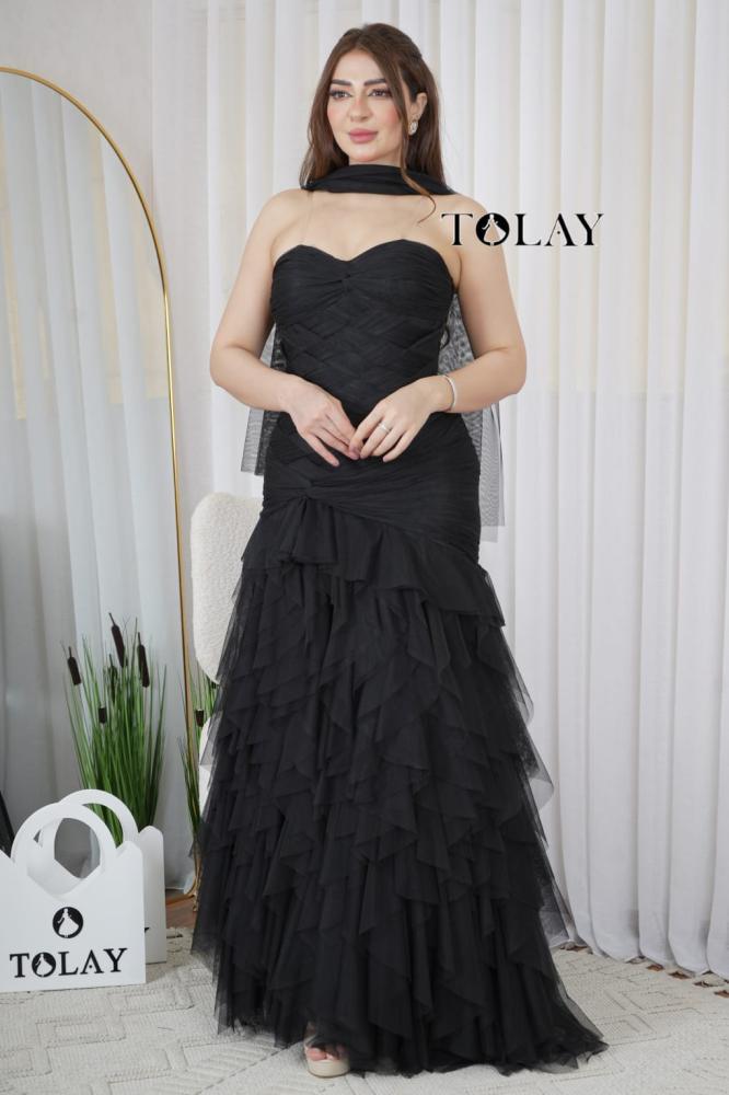 فستان سهره رااقي له الكثير من التفاصيل المميزه عن باقي تصاميم السهره ..صدريه توب.علئ الخصر طبقات تل متداخه عرضيا ومن الاسفل مكشكش بطبقات التل المميزه .ربطات من الخلف للتحكم بالمقاس ....تفاصيل الصور توضح التصميم المميز لهذا الفستان